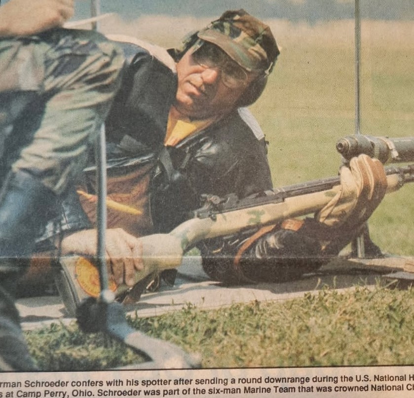 In 1975 Herman was reassigned to the 3rd FSSG in Okinawa. In 1976 he returned to Camp Lejeune with the 2nd Amtrak Battalion. After that he returned to Engineer School as an instructor again. Herman started shooting competition matched at that point, and he did pretty good, he was selected to join the USMC summer team. He eventually went distinguished with the service riffle earning many awards including a national championship in long range team competition. Then Herman was assigned to MOS 8531, small arms instructor.
